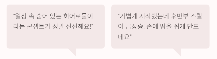 - “일상에 숨어 있는 히어로물이라는 콘셉트가 신선하다.”