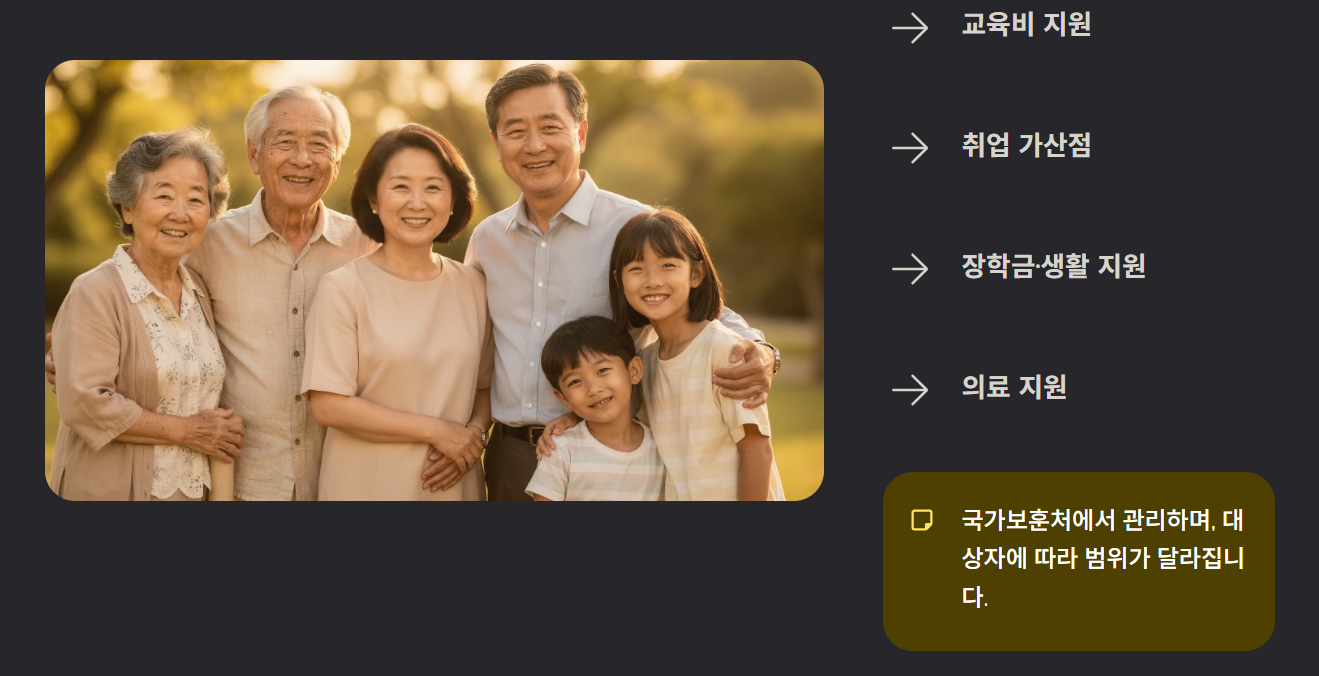 이 제도는 국가보훈처에서 관리하며 대상자에 따라 지원 범위가 달라질 수 있습니다.