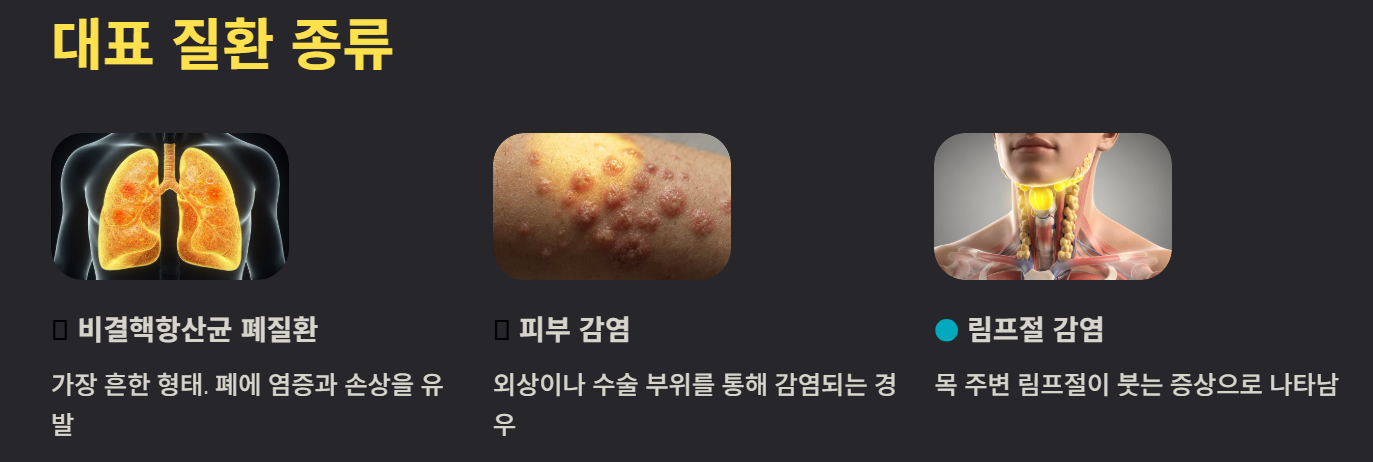 대표적인 비결핵성 질환으로는 다음이 있습니다.
