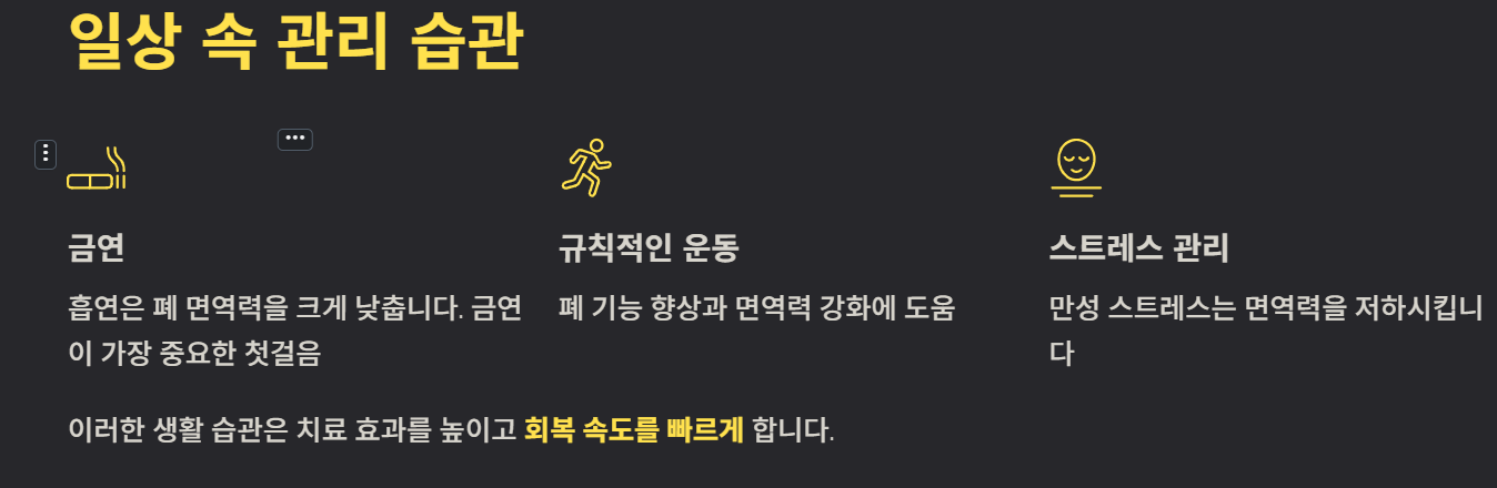 - 면역력 관리 (충분한 수면, 영양 섭취)