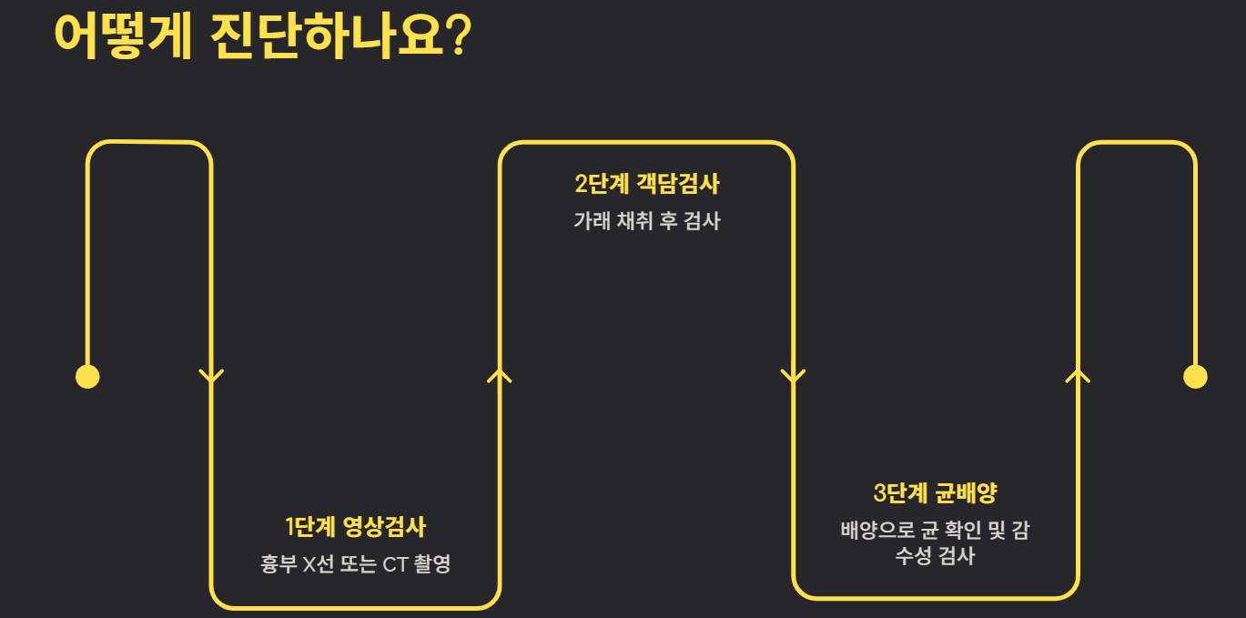 - 흉부 X-ray 또는 CT 촬영