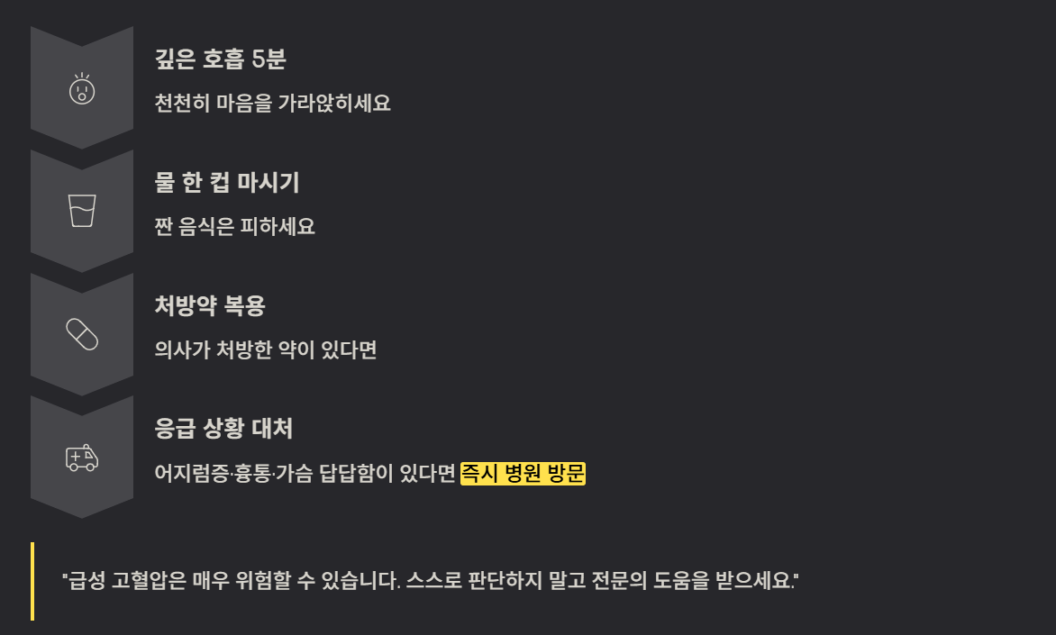 급성 고혈압은 매우 위험할 수 있어 스스로 판단하지 않는 것이 중요합니다.