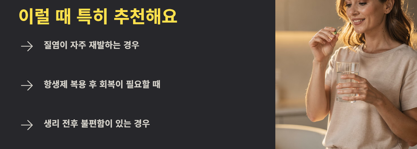 다음과 같은 경우 여성유산균 섭취가 특히 추천됩니다.
