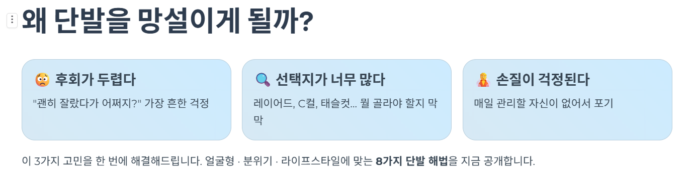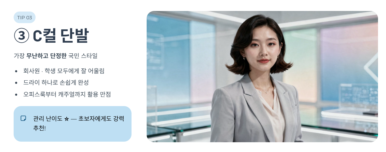 👉 이 세 가지만 기억해도 “후회 없는 단발”이 가능합니다.
