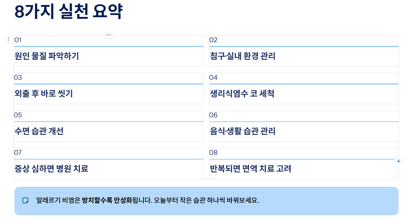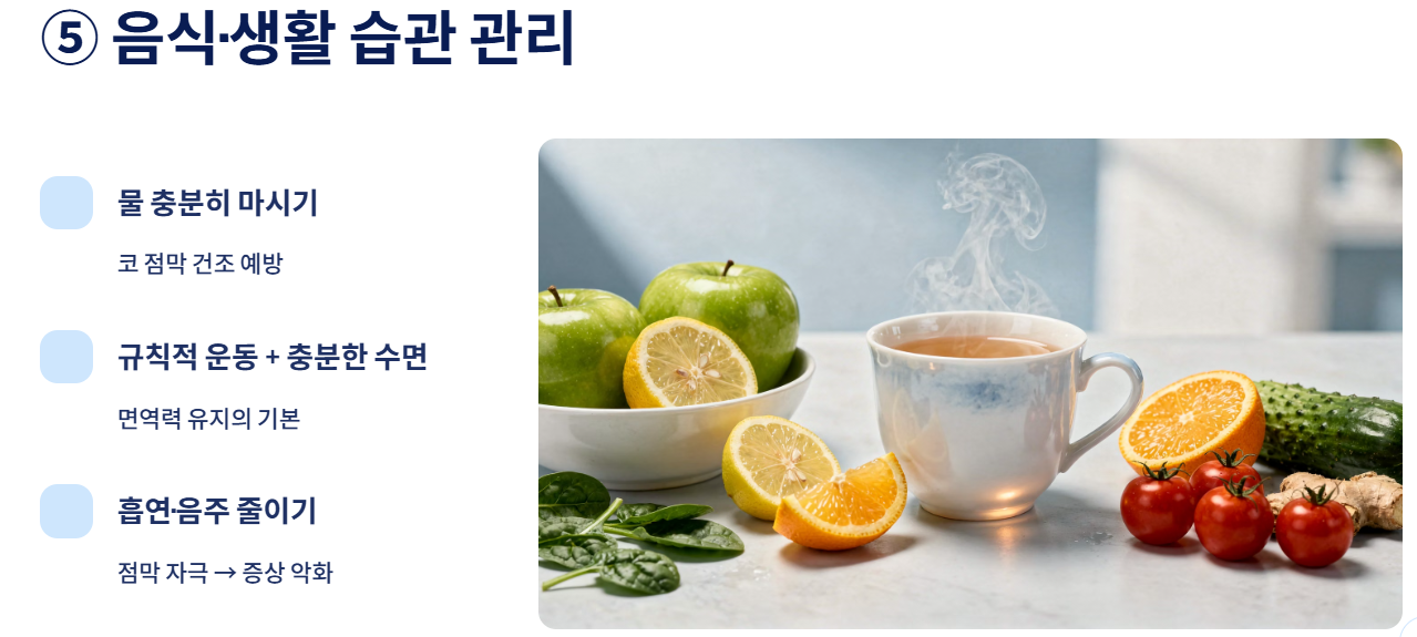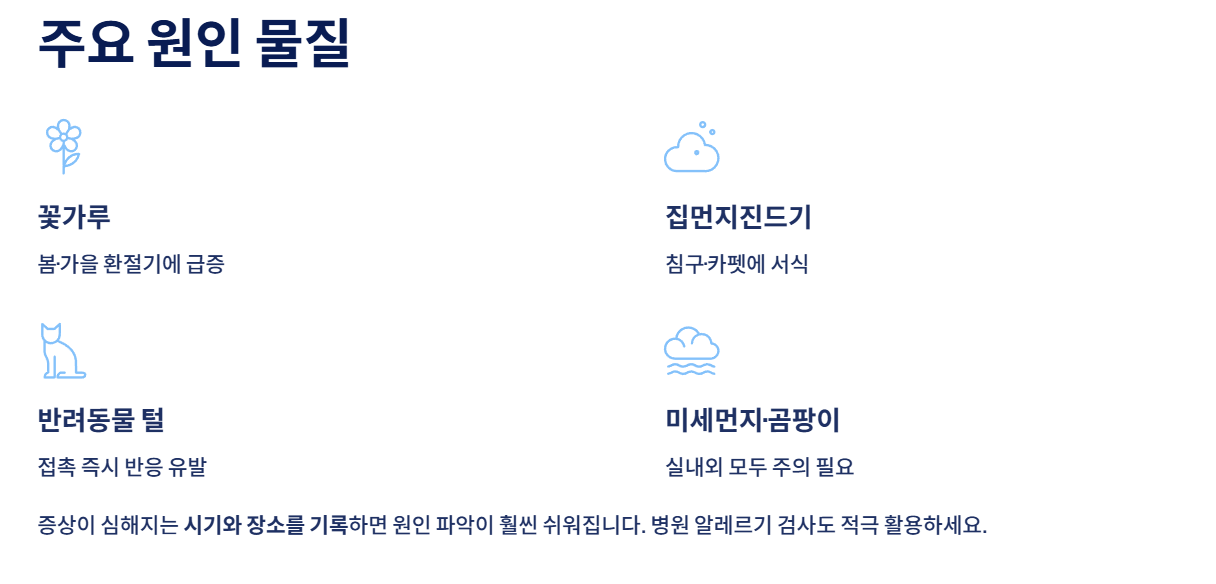 원인을 정확히 알면 예방이 훨씬 쉬워집니다. 필요하다면 병원에서 알레르기 검사를 받아보는 것도 도움이 됩니다.