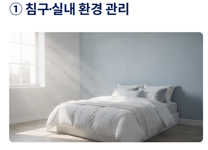 알레르기 비염 환자는 집 안 환경만 바꿔도 증상이 크게 줄어드는 경우가 많습니다. 특히 침구에는 집먼지진드기가 많기 때문에 관리가 중요합니다.
