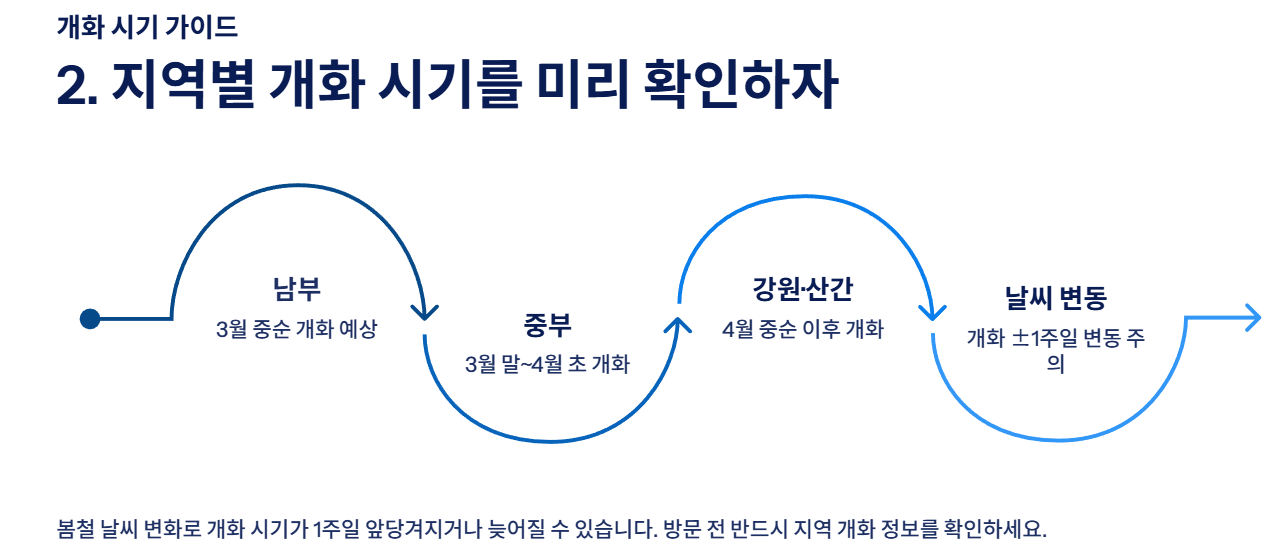 특히 봄철에는 날씨 변화가 심해 개화 시기가 1주일 정도 앞당겨지거나 늦어질 수 있다.