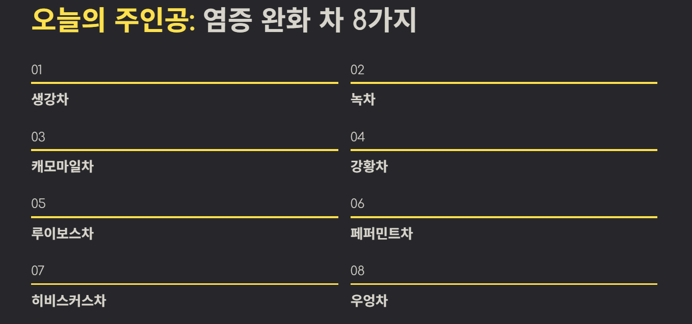 염증에 좋은 차 알아보기 (염증 완화 차 8가지 총정리)