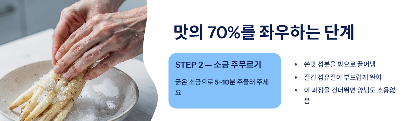 결론: 도라지무침은 ‘쓴맛 제거’가 핵심이다