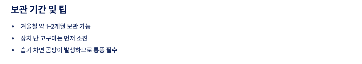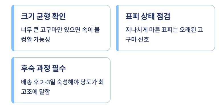 - 너무 큰 고구마만 있으면 속이 물컹할 가능성이 있음
