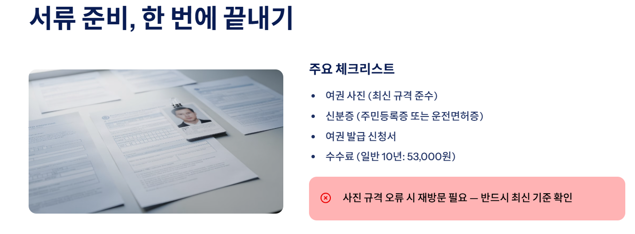 사진 규격 오류, 서류 누락 등으로 재방문하면 발급 기간이 늦어집니다. 여권 사진은 규격이 엄격하므로 반드시 최신 기준에 맞춰 준비하세요.