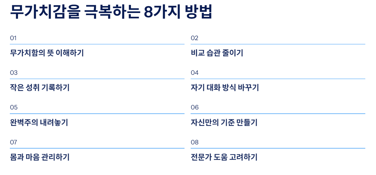 무가치함은 실제로 가치가 없어서가 아니라 스스로 그렇게 느끼는 감정입니다. 비교를 줄이고, 작은 성취를 인정하며, 자신만의 기준을 세우는 것이 중요합니다. 완벽하지 않아도 괜찮습니다. 이미 충분히 가치 있는 존재라는 사실을 잊지 마세요.