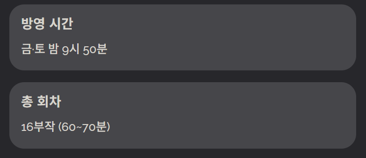 - 첫 방송: 2025년 11월 21일 금요일.