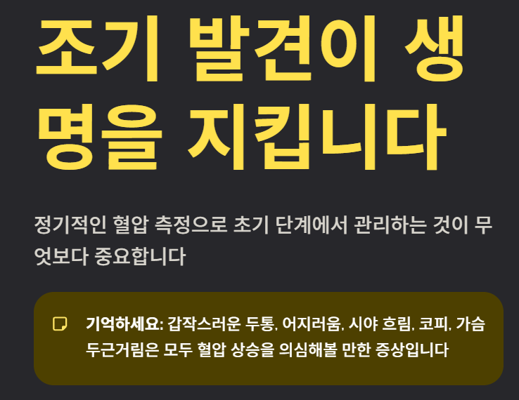 혈압이 높을 때 나타나는 증상들을 미리 알고 있으면 위험한 상황을 예방하고 적절한 관리에 도움이 됩니다.
