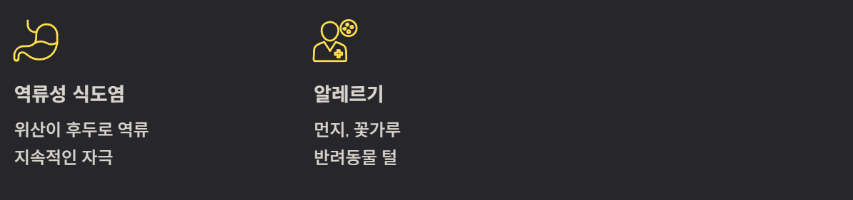 - 원인 질환 치료: 역류성 식도염, 알레르기 등