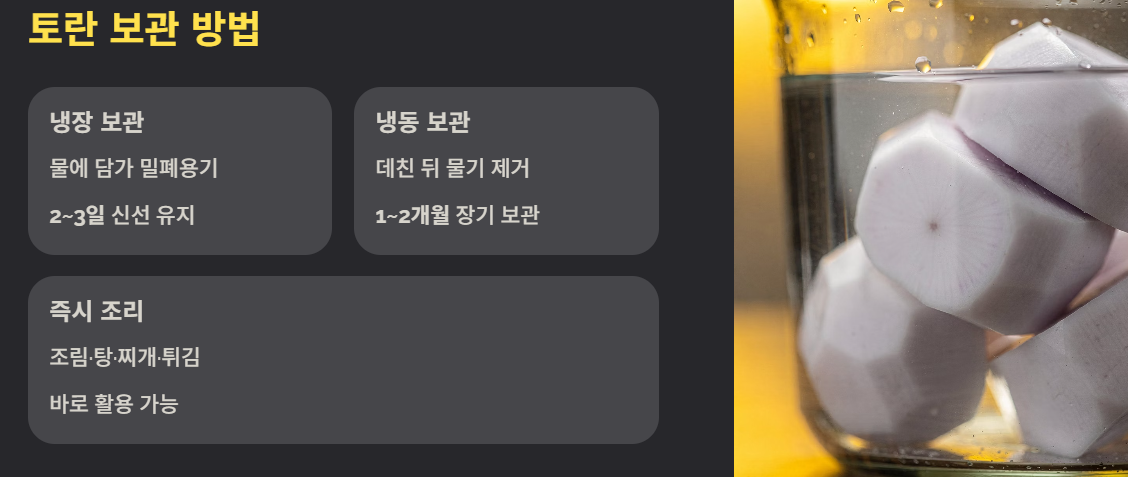 토란은 껍질을 제거한 후 다음과 같이 보관해야 오래 신선합니다.