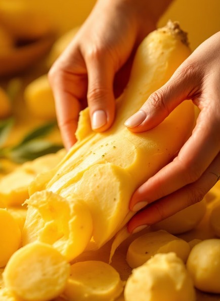 - 손으로 비틀어 벗기면 껍질이 밀려 나가듯 쉽게 벗겨집니다.