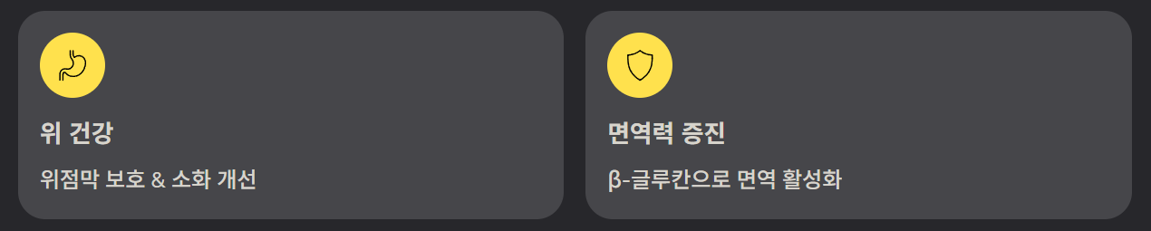 노루궁뎅이버섯에는 β-글루칸이 풍부해 면역 세포 활성화를 촉진합니다. 꾸준히 섭취하면 감기 예방, 체력 유지, 피로 회복에도 긍정적인 영향을 기대할 수 있습니다. 특히 계절 환절기나 스트레스 많은 시기에는 면역 보조용으로 섭취하는 사람들이 많습니다.