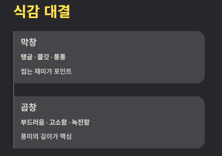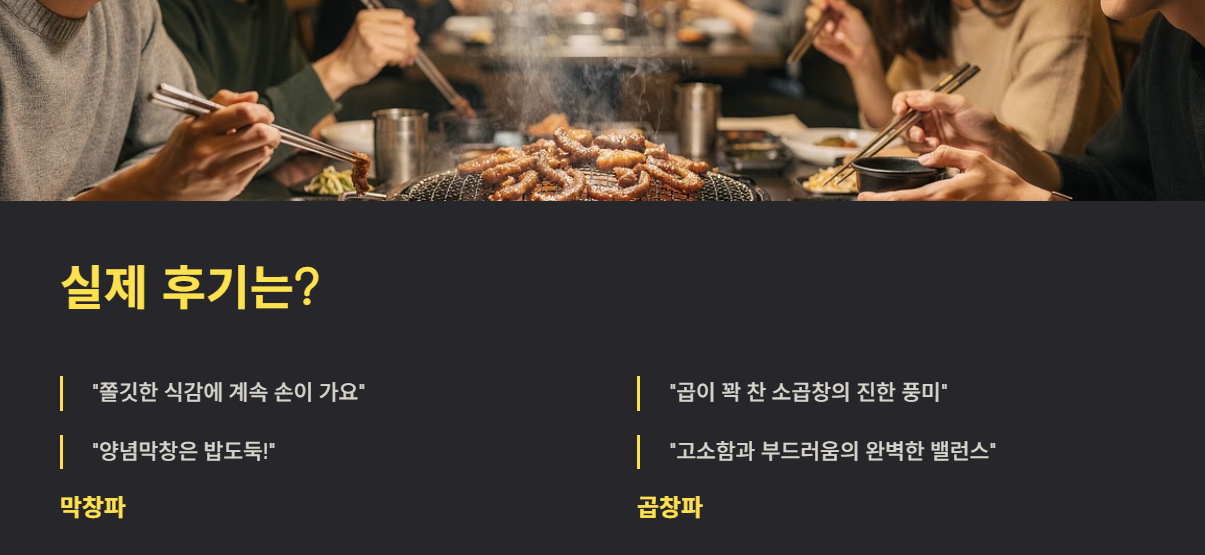 사용자 경험 대부분은 곱창은 풍미 중심, 막창은 식감 중심으로 요약됩니다.