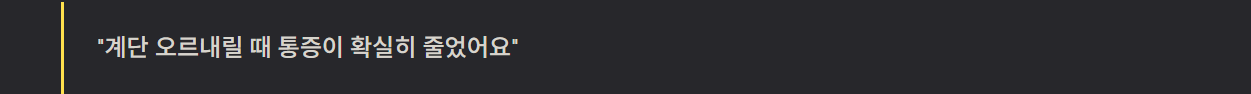 전반적으로 통증 감소, 안정성 증가, 운동 시 자신감 향상이라는 공통 후기가 많습니다.