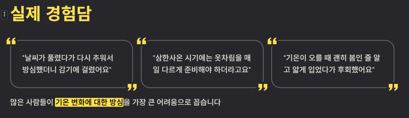 많은 사람들이 기온 변화에 대한 방심을 가장 큰 어려움으로 꼽습니다.