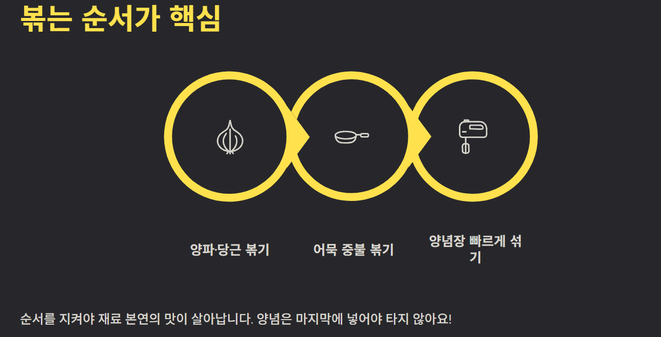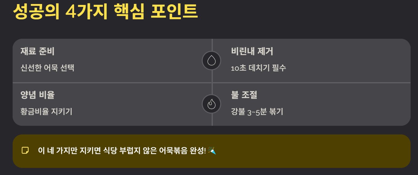 어묵볶음 맛있게 만드는법은 어렵지 않지만 몇 가지 핵심 포인트를 지키는 것이 중요합니다. 재료 준비, 비린내 제거, 양념 비율, 불 조절까지 이 네 가지만 잘 지키면 누구나 실패 없이 맛있는 어묵볶음을 만들 수 있습니다. 오늘 소개한 방법을 참고하여 집에서도 간단하고 맛있는 한 끼 반찬을 완성해 보세요.
