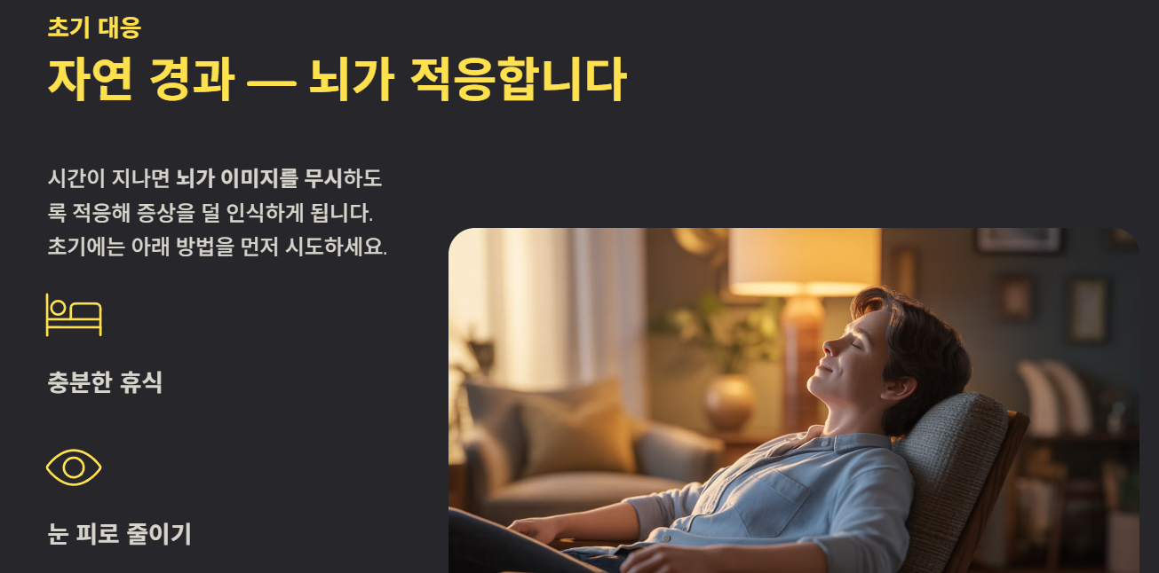비문증은 시간이 지나면서 뇌가 적응하여 덜 느끼게 되는 경우가 많습니다.