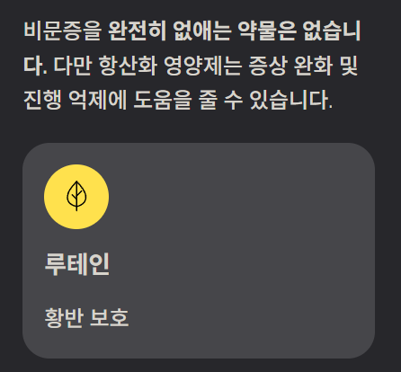 다만 항산화제나 눈 영양제는 증상 완화에 도움을 줄 수 있습니다.