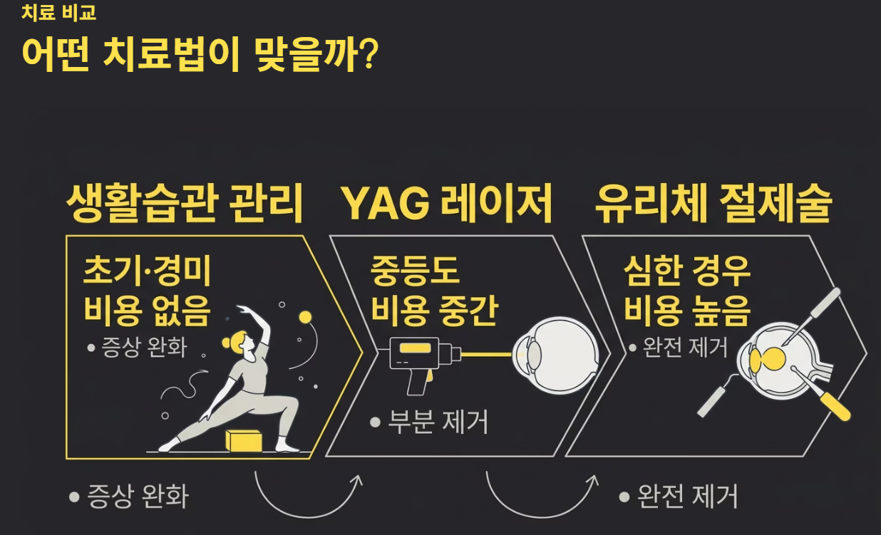 비문증은 대부분 위험하지 않지만, 경우에 따라 심각한 눈 질환의 신호일 수 있습니다. 초기에는 생활습관 관리로 충분하지만, 증상이 심해지면 레이저나 수술 치료를 고려해야 합니다. 무엇보다 중요한 것은 정기적인 안과 검진입니다.