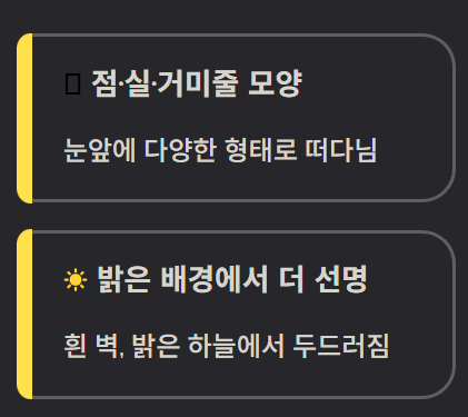 - 눈앞에 점, 실, 거미줄 모양이 보임