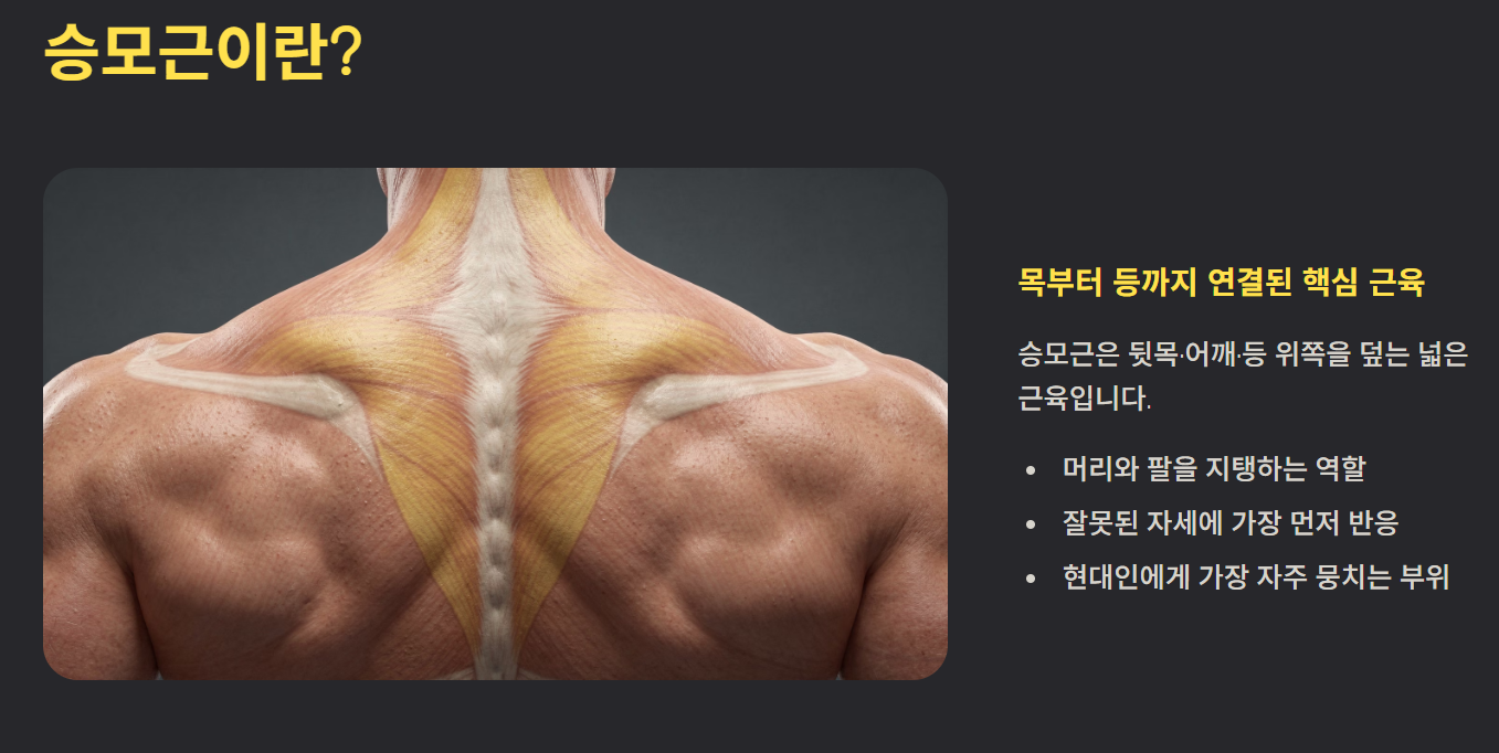 승모근 통증은 현대인이라면 누구나 한 번쯤 겪는 흔한 증상입니다. 특히 스마트폰과 컴퓨터 사용이 늘어나면서 목과 어깨 근육에 부담이 커지고 있는데요. 이로 인해 단순한 근육 뭉침부터 만성 통증까지 다양한 형태로 나타납니다. 이번 글에서는 승모근 통증의 주요 원인과 해결 방법을 자세히 정리해드립니다.