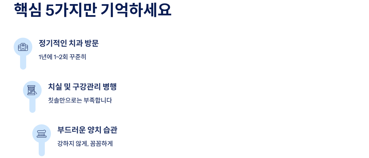 이 5가지만 잘 지켜도 잇몸 건강을 오래 유지할 수 있습니다. 스케일링 후 올바른 관리로 건강한 치아를 지켜보세요!