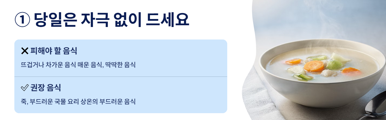스케일링 직후에는 잇몸이 예민한 상태입니다. 너무 뜨겁거나 차가운 음식, 매운 음식은 피하는 것이 좋습니다. 부드러운 음식 위주로 섭취하면 통증을 줄일 수 있습니다.